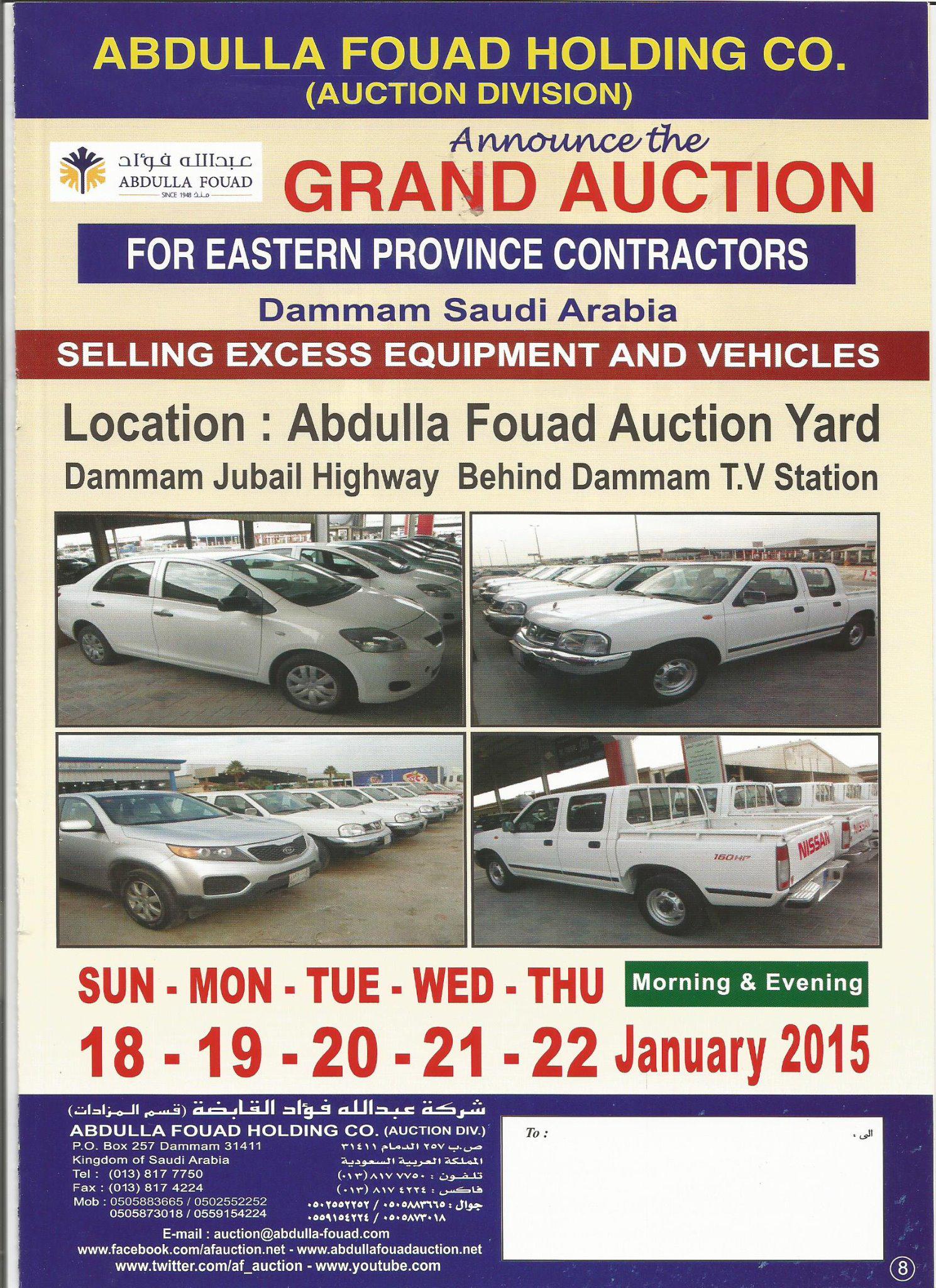 شركة عبدالله فؤاد قسم المزادات On Twitter Abdulla Fouad Holding Co Auction Division Invites You To The Grand Auction In Dammam Http T Co Fvhtntpt9k